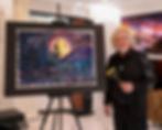 Artists and their work displayed at events and galleries with some pieces being available for sale, auction, or gifts to charities.